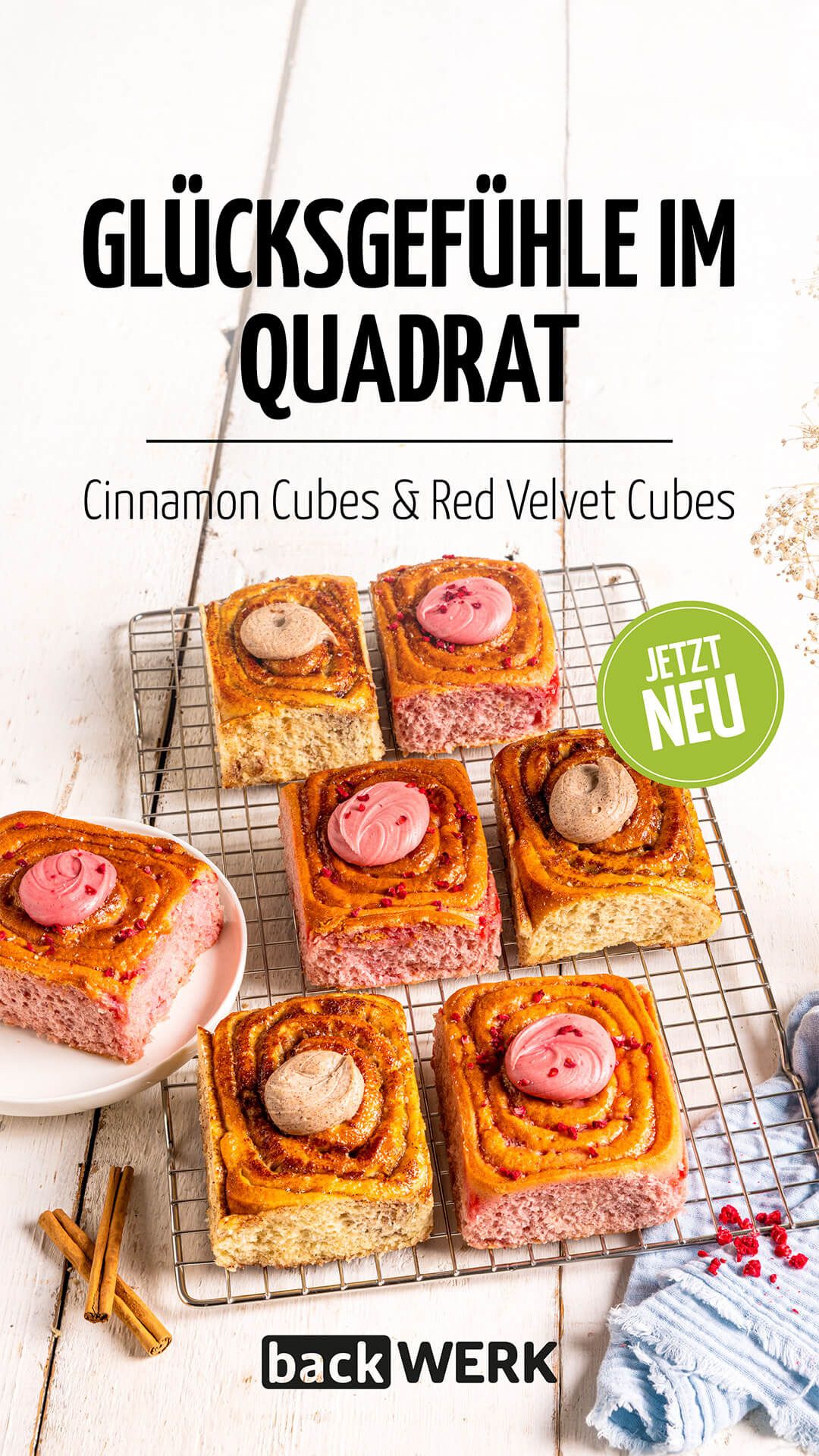Glücksgefühle im Quadrat – Die neuen BackWerk Cubes sind da! Ab dem 11. November 2025 bringt BackWerk zwei unwiderstehliche Neuheiten in die Theke: den Cinnamon Cube und den Red Velvet Cube.